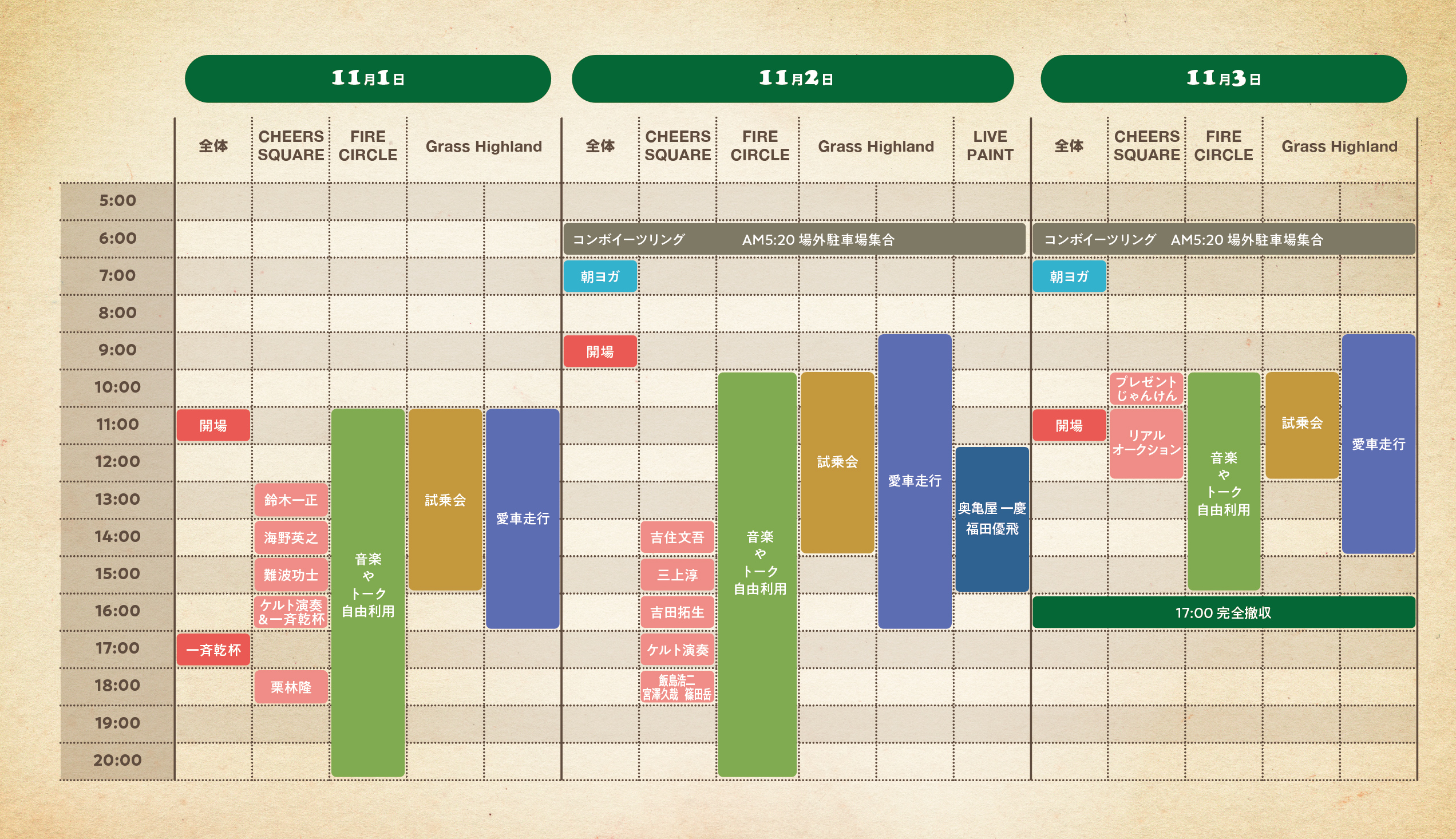 ・TAMETABLEの内容は予告なく変更になる場合があります。詳細はLAND ROVER CHEERS公式Instagramでご確認できます。